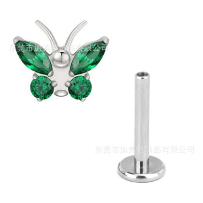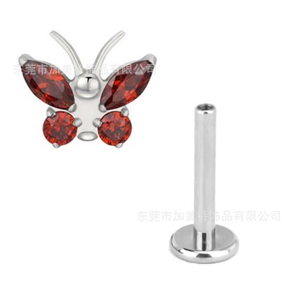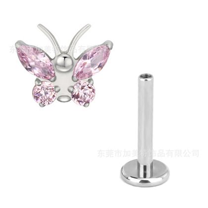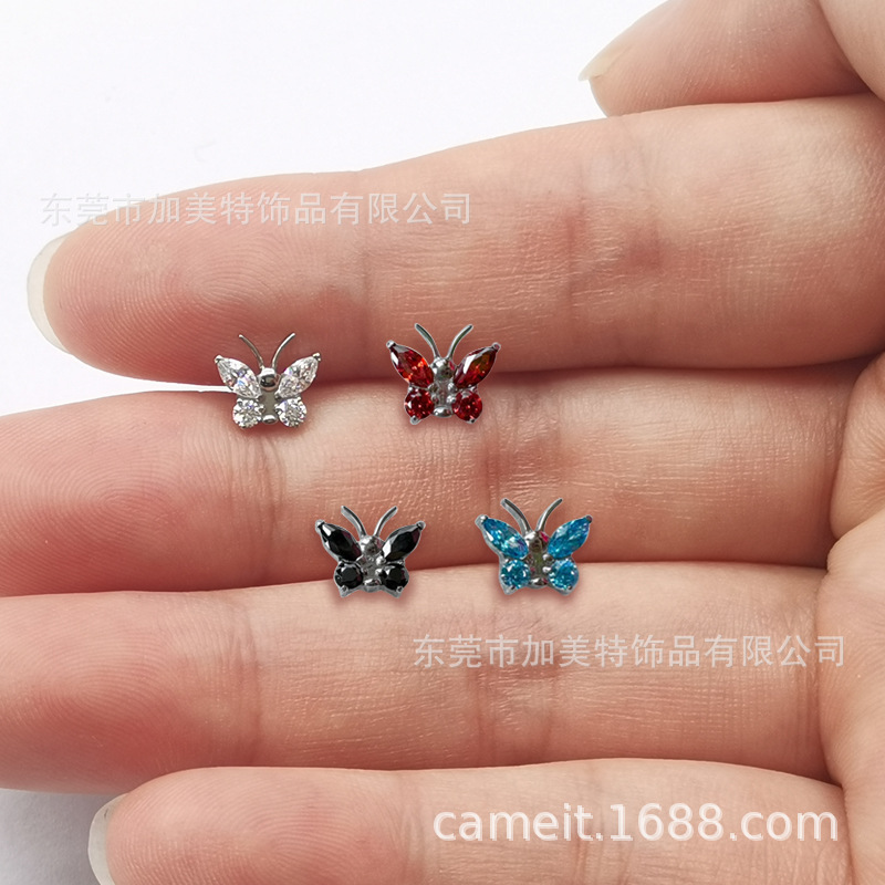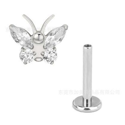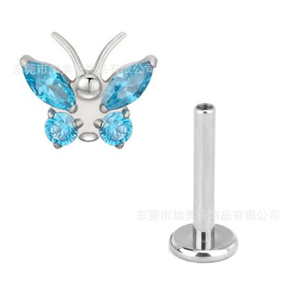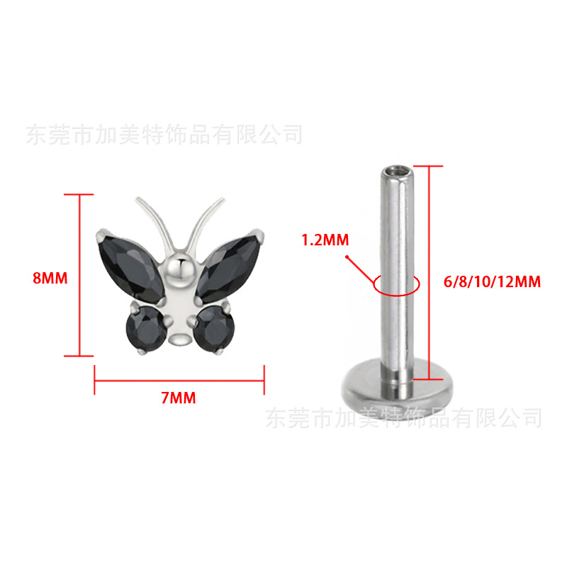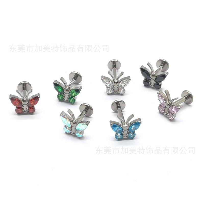 Foreign trade new G23 titanium color inlaid zircon butterfly earrings earrings high sense flat bottom internal thread lip nail puncture