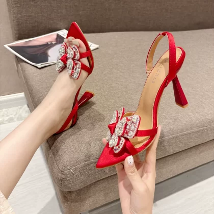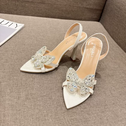 Foreign trade new style French elegant bow high heels rhinestone stiletto sandals Lazada Women Sandals