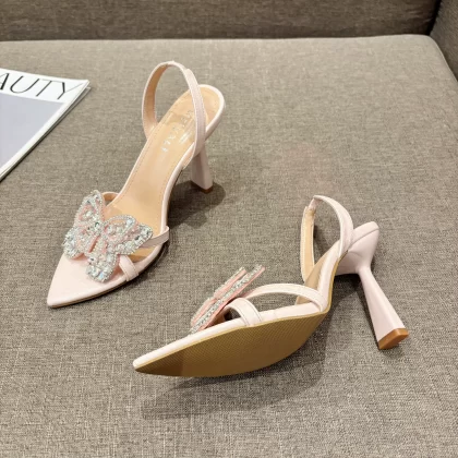 التجارة الخارجية جديدة فرنسية جديدة أنيقة الفراشة عالية -حذاء عالية الحذاء راينستون رقيقة الكعب الرقيق لزادا الصنادل