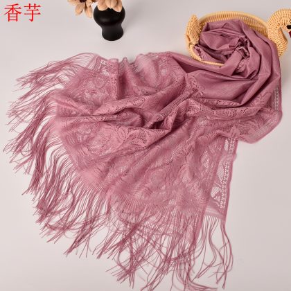 Foreign trade scarf plain solid color lace Lily scarf Malaysia scarf wholesale