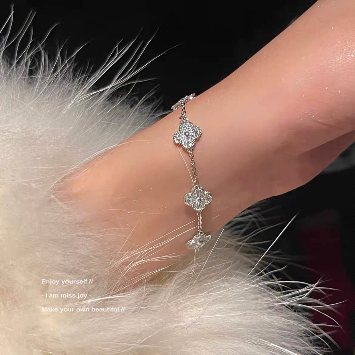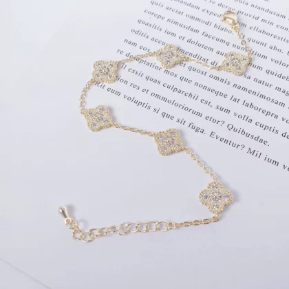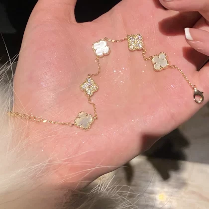 | nameOriginal | Four-leaf clover bracelet for women, high-end, light luxury, niche design, high-end zircon, ultra-sparkling temperament, lady-style hand jewelry |