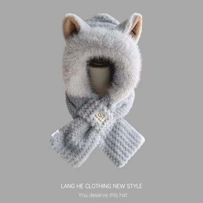 | nameOriginal | Fox ears hat scarf integrated hat scarf two-piece set cute plush hat scarf two-piece set |