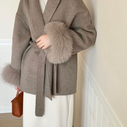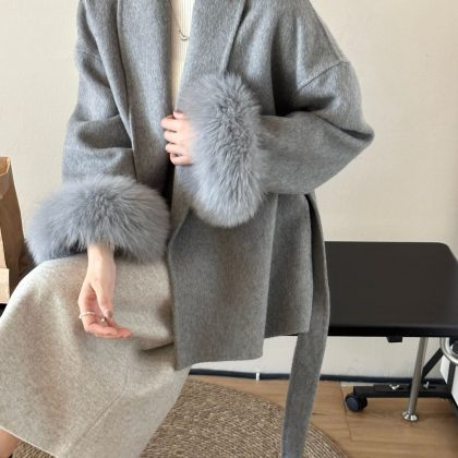 | nameOriginal | Fox fur coat high-grade lace-up green collar elegant double-sided wool coat woolen women's autumn and winter New fur |