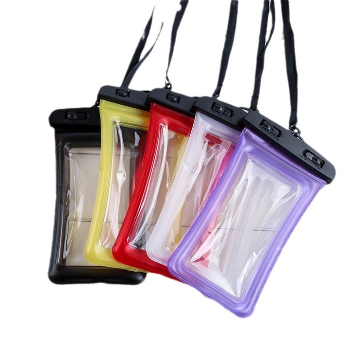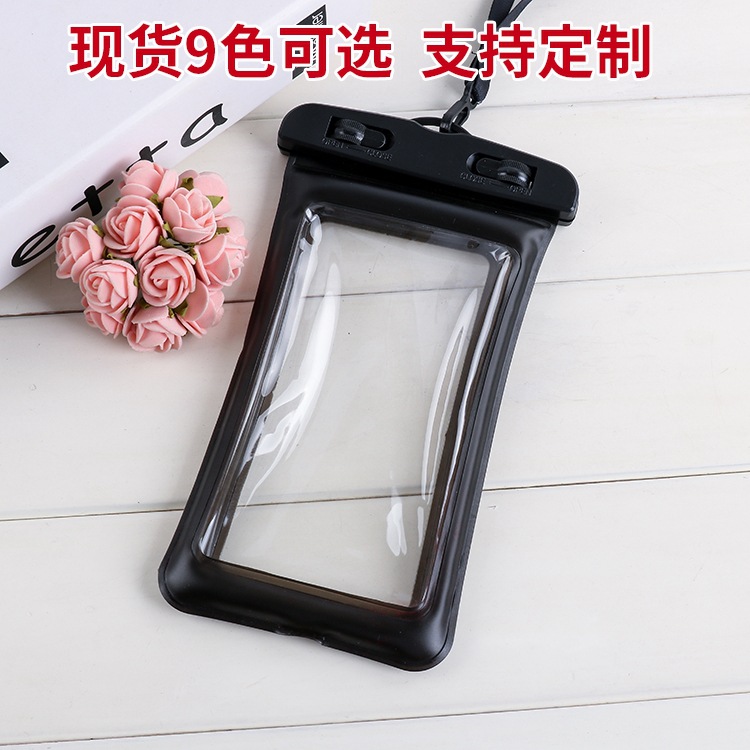 Free sample inflatable mobile phone waterproof bag PVC solid color outdoor inflatable waterproof bag touch screen drifting printable logo