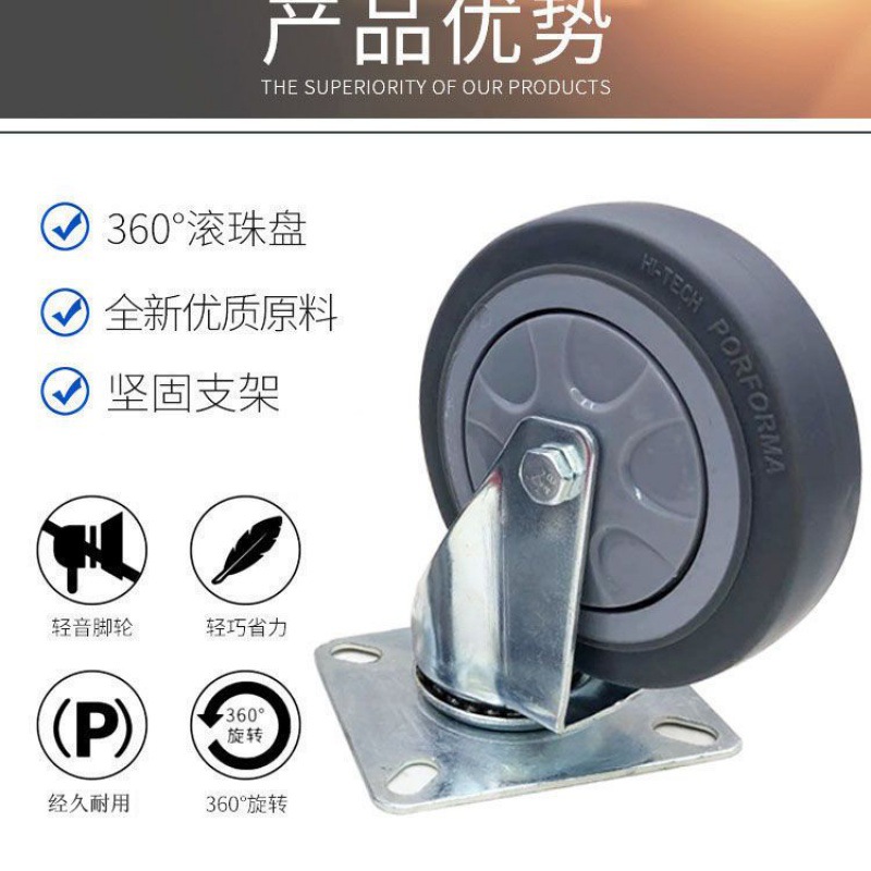 | nameOriginal | Free shipping 4 inch 5 inch TPR rubber mute casters plastic flat cart with directional universal wheels towing wheels |