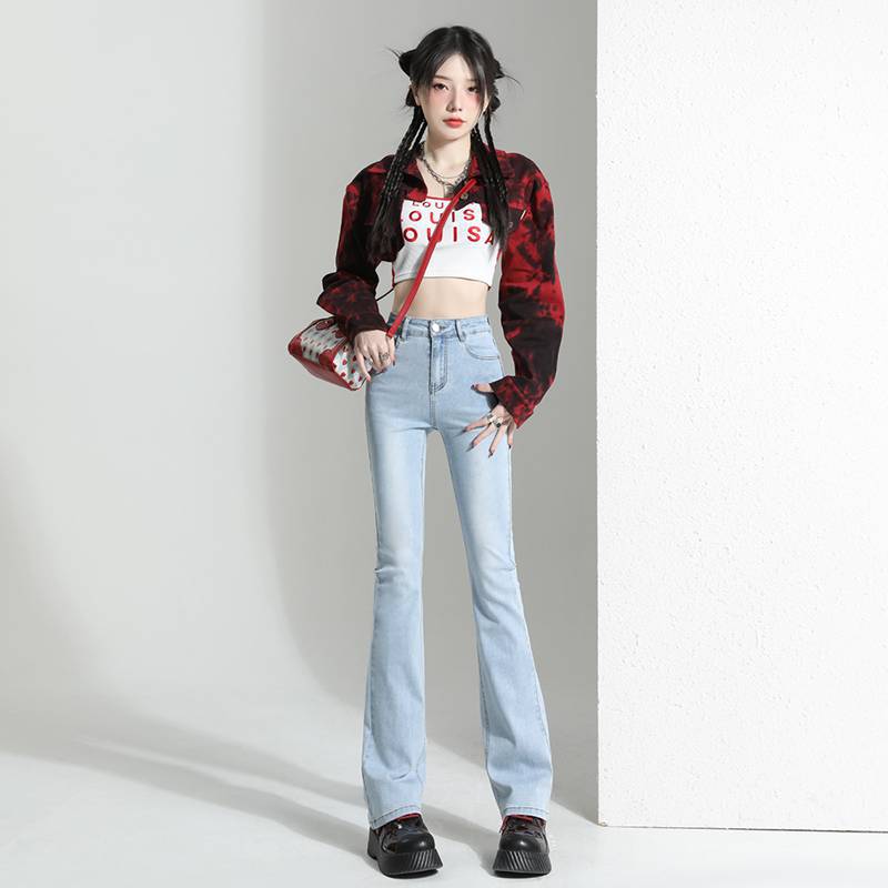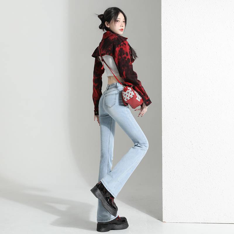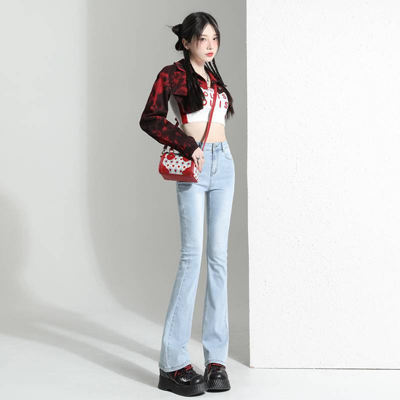 | nameOriginal | Free shipping Interior high waist simple new pencil jeans women's straight micro flared pants cropped trousers |