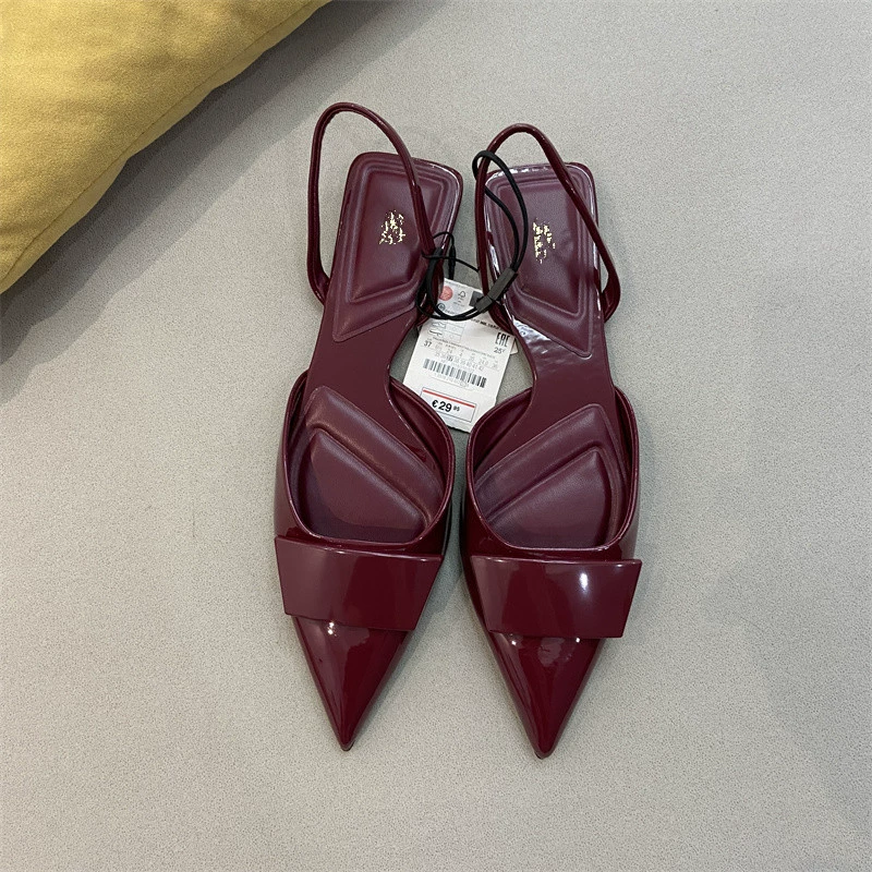 | nameOriginal | French burgundy flat metal buckle toe sandals |