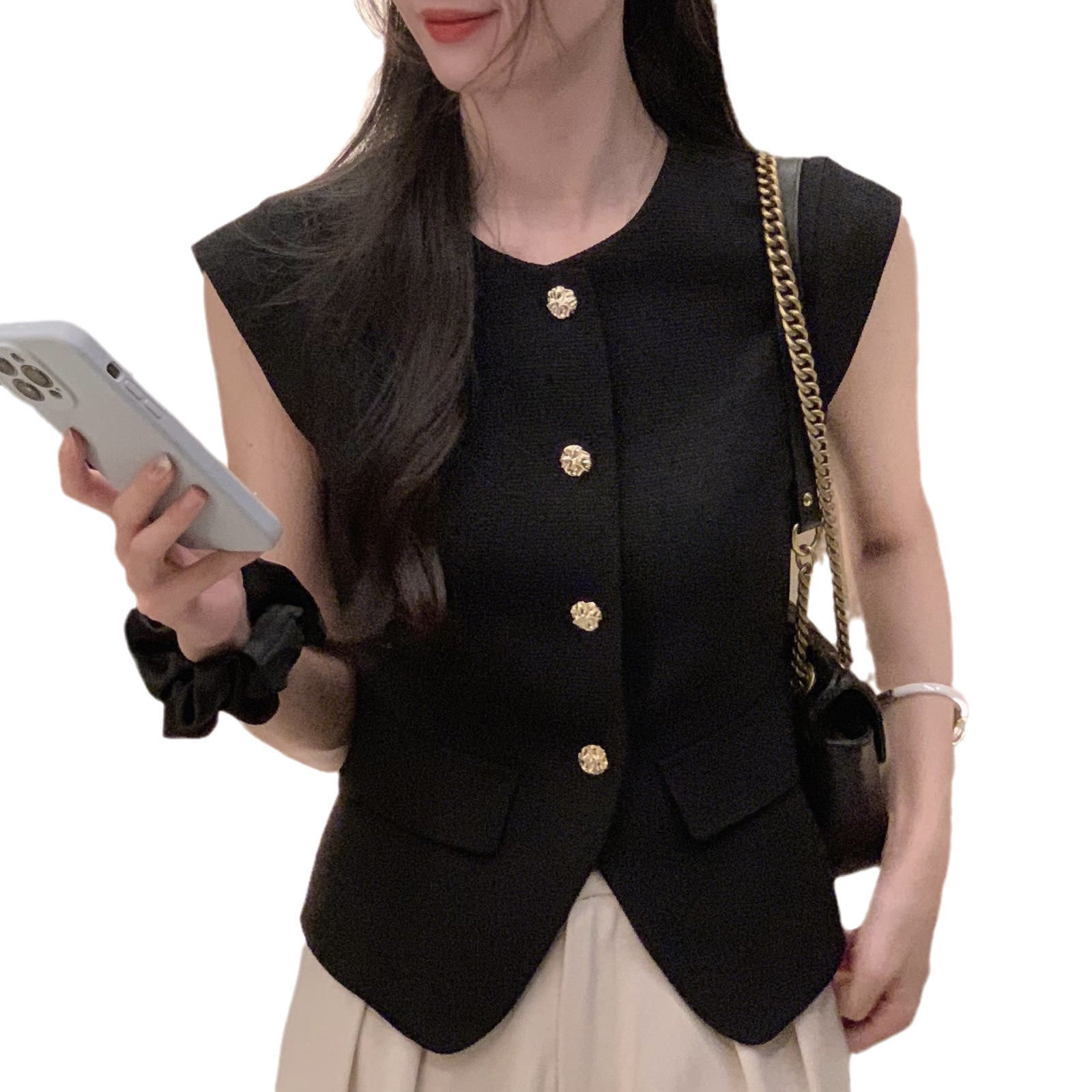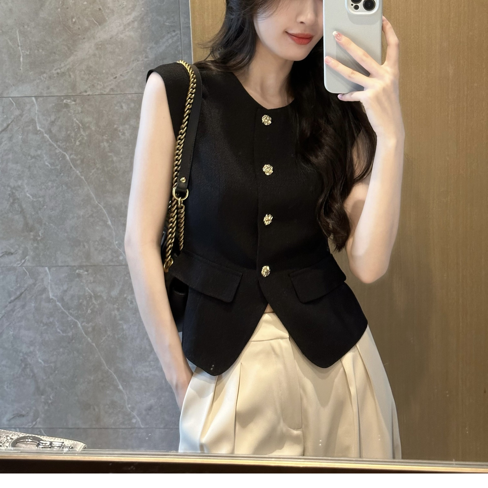 French Chanel style black suit vest women's spring and summer outer wear design sense stacked small waistcoat short top
