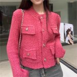 سترة نسائية بنمط شانيل الفرنسي لشتاء 2023 معطف كارديجان محبوك سميك قصير متعدد الاستخدامات بأكمام طويلة