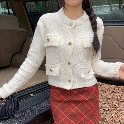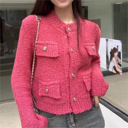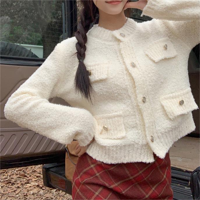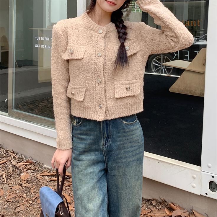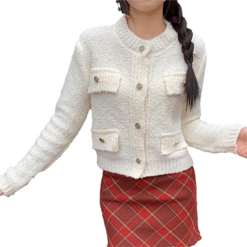 French Chanel style sweater women's winter 2023 new short versatile thick knitted cardigan coat long sleeve top
