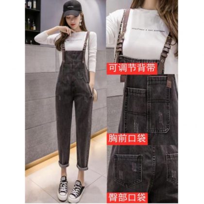 | nameOriginal | French color preppy style Denim suspender pants women's spring and autumn 2024 New design versatile casual slimming trousers |