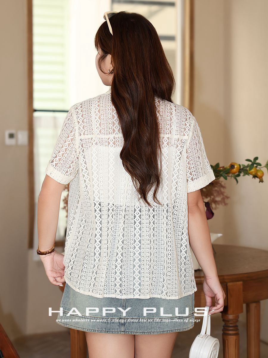 French Commuter Hollow Lace Short-sleeved Shirt Moisturizing 8977 plus size Women's Hollow Lace High-end Short-sleeved Top