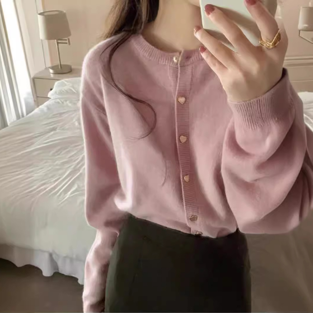 | nameOriginal | French Crewneck Love Button Soft Waxy Sweater Women's Autumn and Winter New Lazy Gentle Style Fashionable Knitted Cardigan Top for Women |