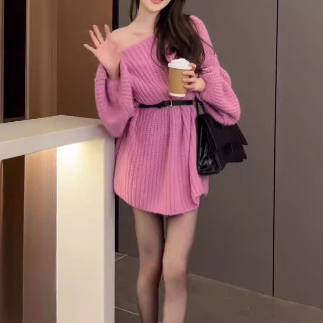 | nameOriginal | French Design Sense Niche Shoulder Sweater Autumn and Winter New Korean Elegant Loose Slimming Solid Color Knitted dress |