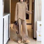 | nameOriginal | French fashion age-reducing knitted suit women's autumn and winter sweater turtleneck top + high waist casual wide leg pants two-piece set |