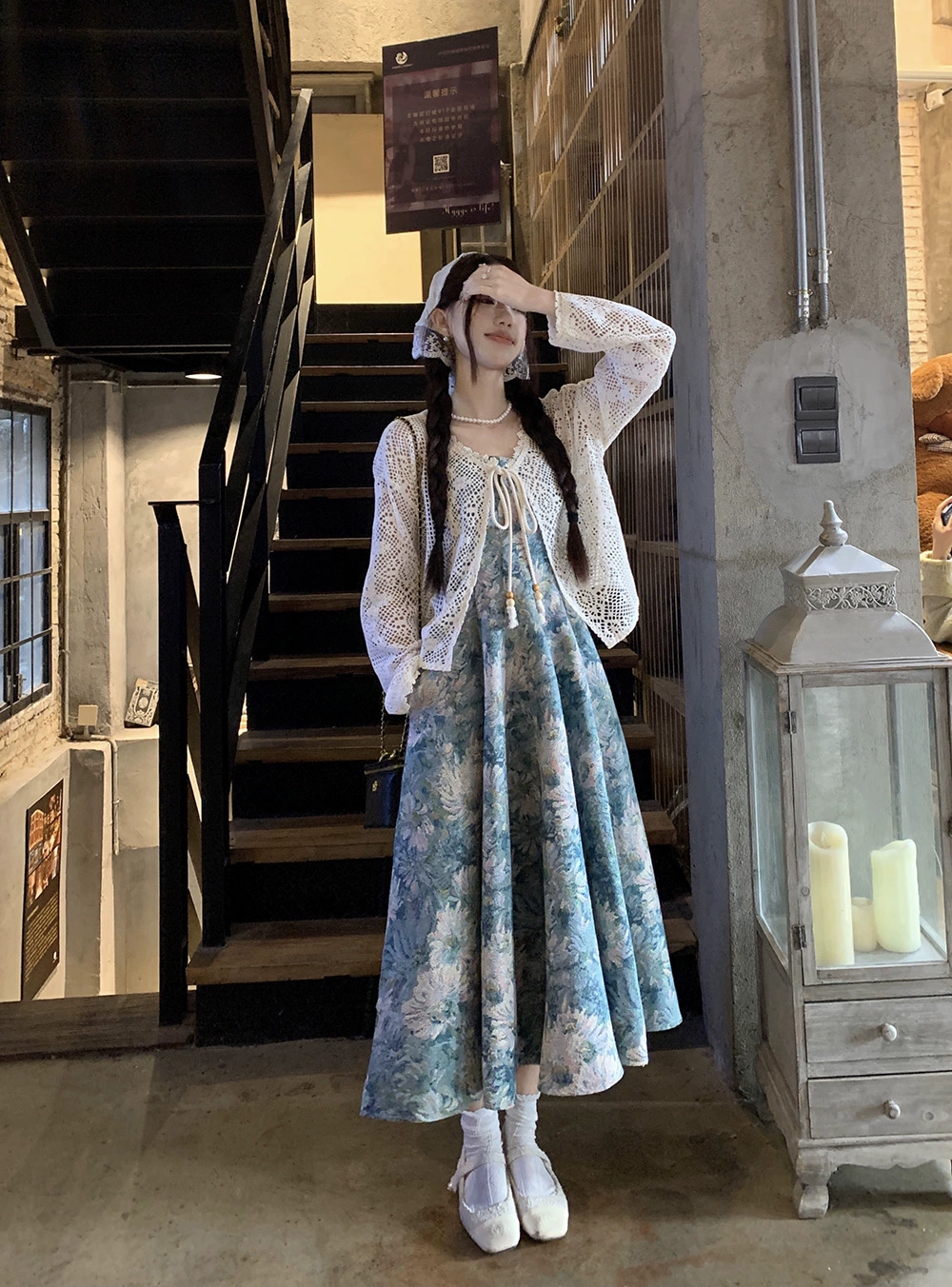 | nameOriginal | French floral dress for fat girls to look slimming and cover their flesh with suspenders |