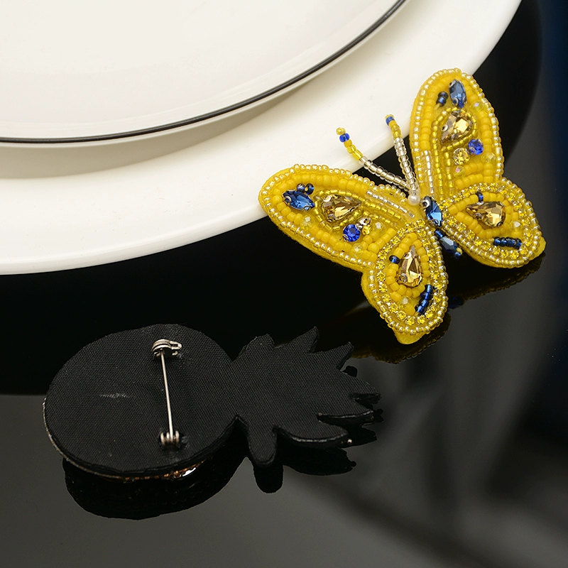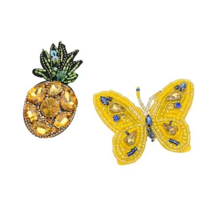 French handmade bead embroidery, crystal pineapple butterfly brooch, cloth patch women’s accessories, high-end pins, decorative creative badges