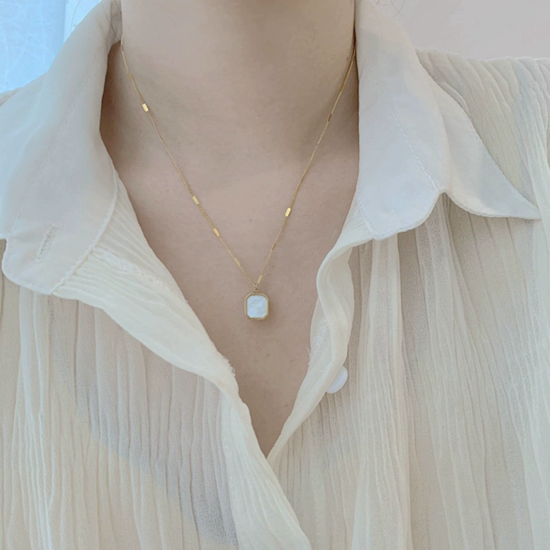 | nameOriginal | French high-end golden square mother-of-pearl necklace for women INS trend niche light luxury exquisite temperament versatile clavicle chain |