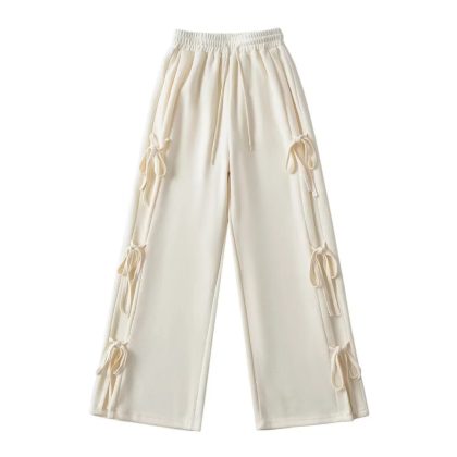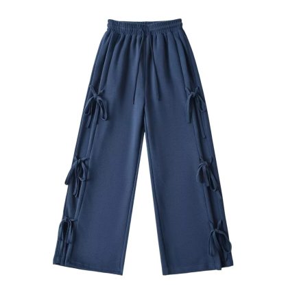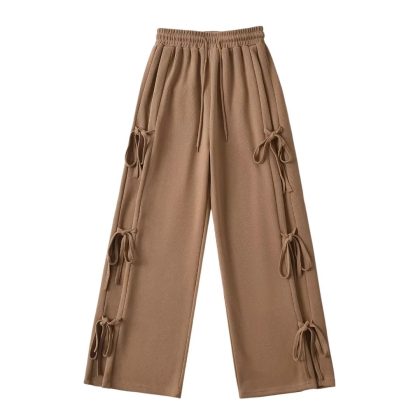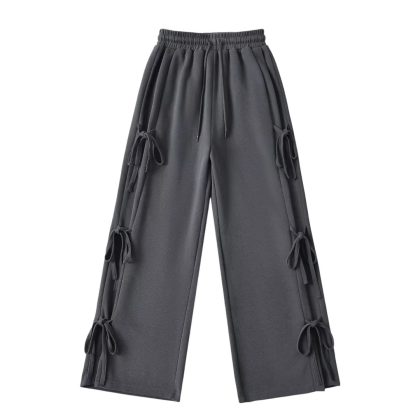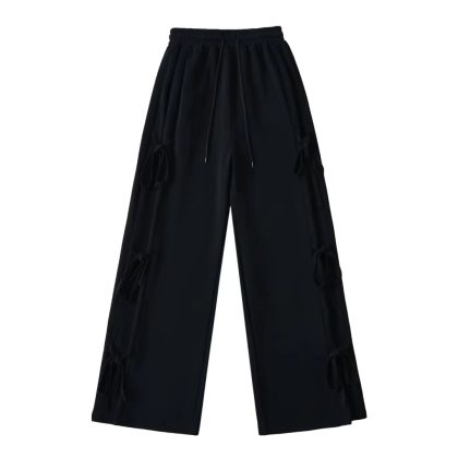 French High Street Bow Lace-up Straight Loose Casual Pants Retro Cute Niche Sports Pants for Women