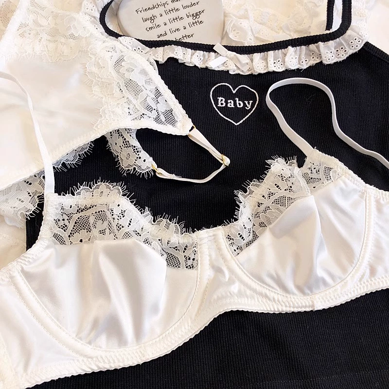 | nameOriginal | French lace sexy satin comfortable thin underwear soft steel ring top-up anti-sagging big breasts showing small bra set |
