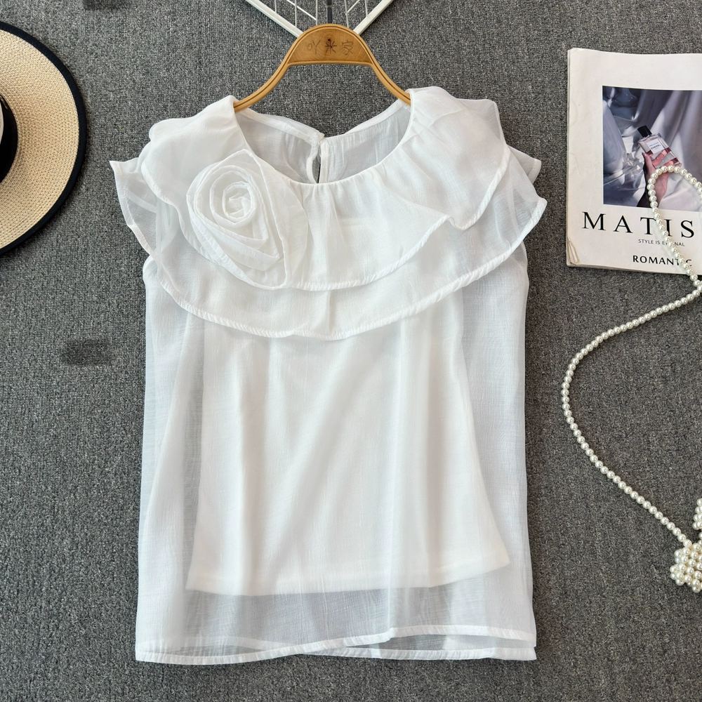 French niche design ruffled splicing chiffon shirt for women summer new loose slimming sleeveless shirt suit
