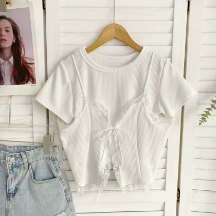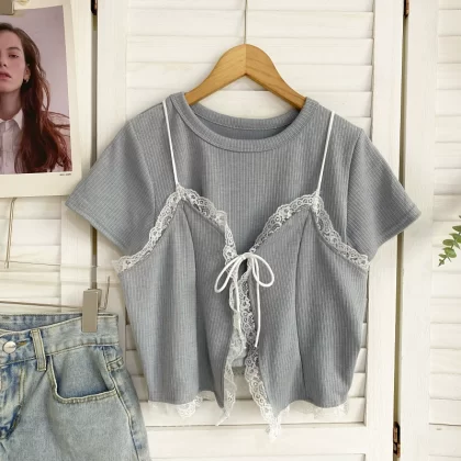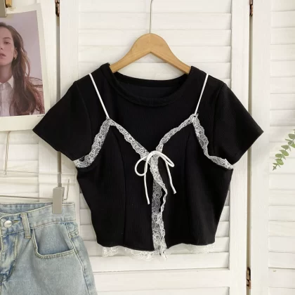 French niche outdoor halter top with lace trim