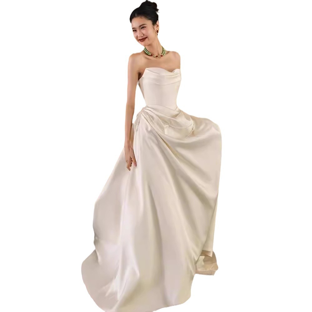 | nameOriginal | French Off-shoulder Light Wedding Dress Bride's Simple Out-of-the-way Yarn High-end Elegant Small Tail White Satin Dress |