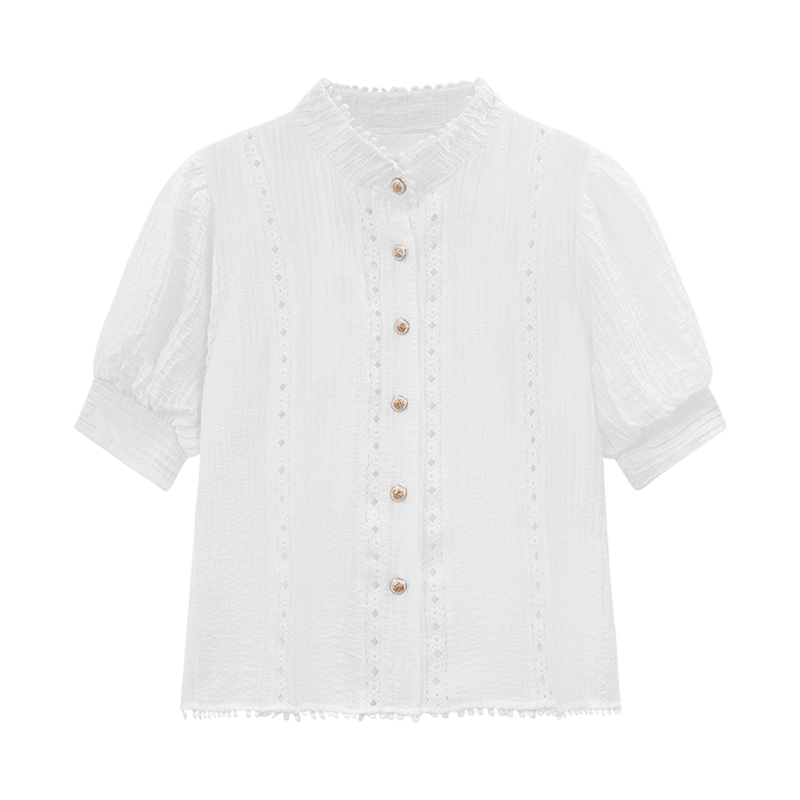 | nameOriginal | French puff stand collar embroidered high waist slimming short sleeves |