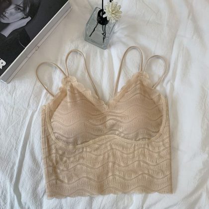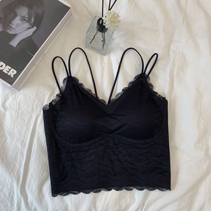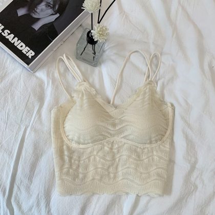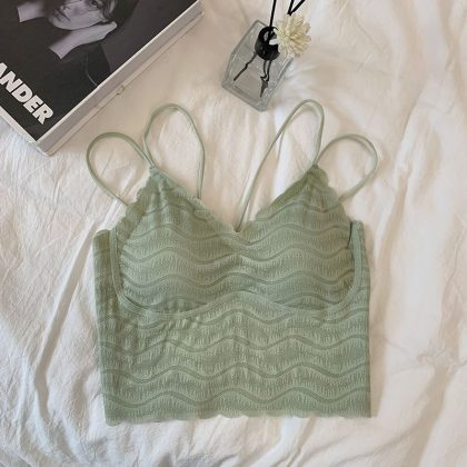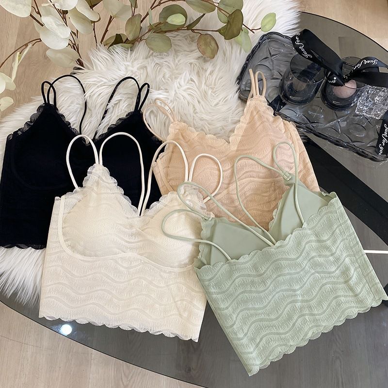 French Retro Lace Sexy Small Camisole Latex Mat Inner Wear Summer Sweet Back Wave Collar Outer Wear Top