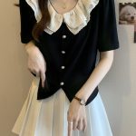 | nameOriginal | French right shoulder fat girl slimming short-sleeved shirt |