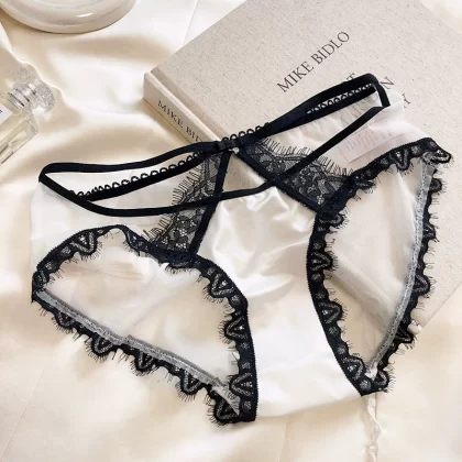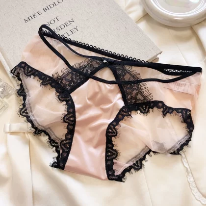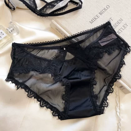 | nameOriginal | French sexy black eyelash lace hollow contrasting color hip-covering breathable mid-low waist briefs cotton crotch underwear |