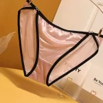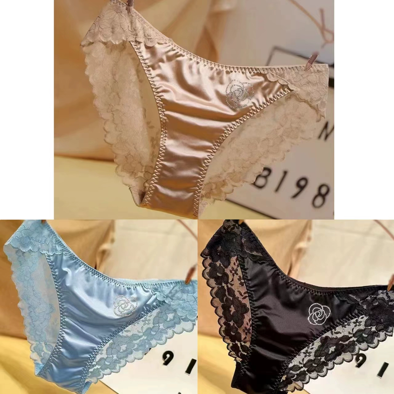 French sexy lace underwear for women, silky, delicate ice silk satin, fashionable diamond-embellished seamless briefs, comfortable and breathable