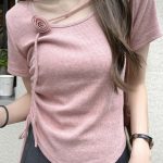 | nameOriginal | French shoulder summer drawstring slimming short-sleeved T-shirt |