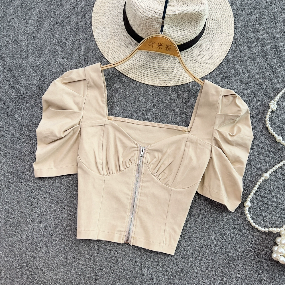 | nameOriginal | French square neck puff sleeve zipper shirt slim fit pullover |