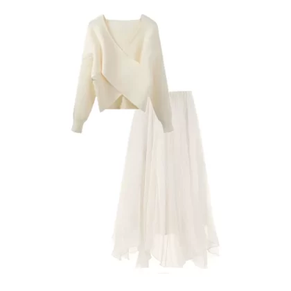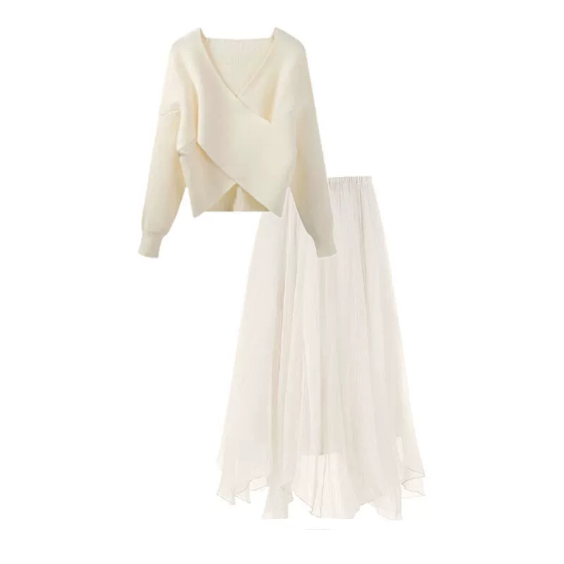 French-style atmospheric mesh two-piece sweater