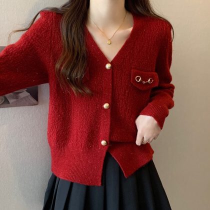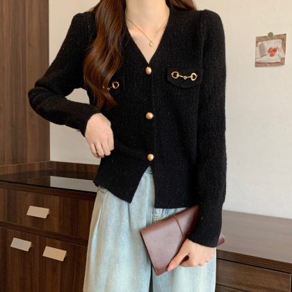 | nameOriginal | French Style Chanel Style Elegant V-neck Knitted Cardigan Women's 2024 Spring and Autumn New Soft Waxy Loose Slimming Coat Top |