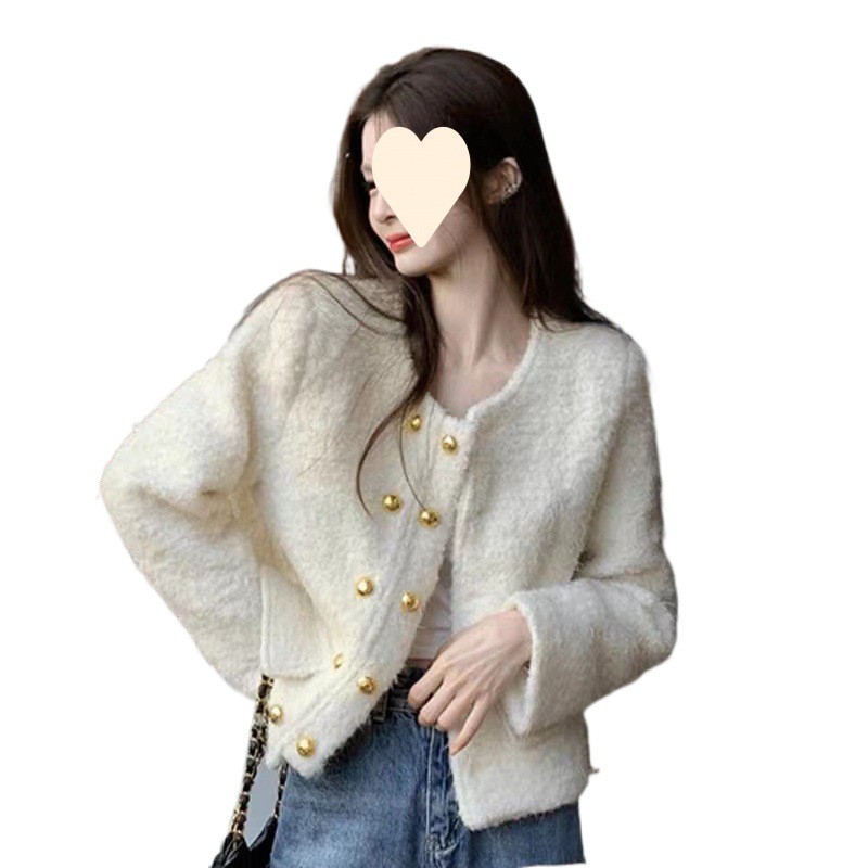 النمط الفرنسي شانيل معطف قصير من صوف الضأن للنساء للخريف والشتاء أنيق فضفاض على الطراز الغربي مزدوج الصدر