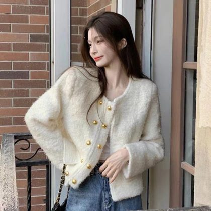 French Style Chanel Style Short Lamb Wool Coat Women's Autumn and Winter Elegant Loose Western Style Double-breasted Top
