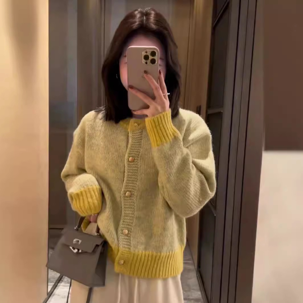 | nameOriginal | French Style Colorblock Short Sweater Jacket Loose Wool Blend Elegant Knitted Cardigan Jacket for Women |