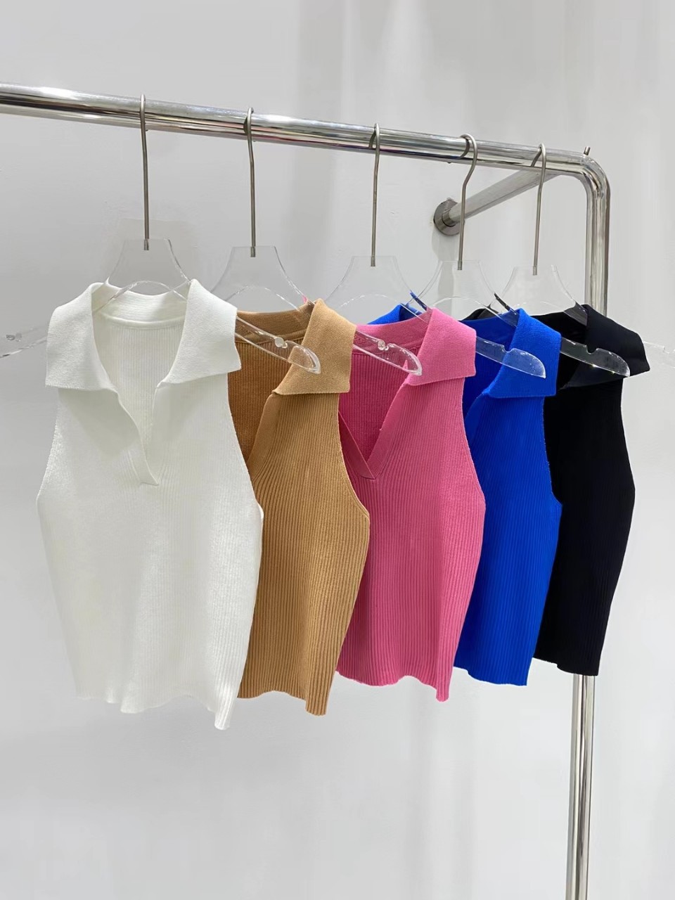 | nameOriginal | French Style Elegant Black Slim-fit Polo Collar Ice Silk Vest Women's Summer V-neck Sleeveless Knitted Vest |
