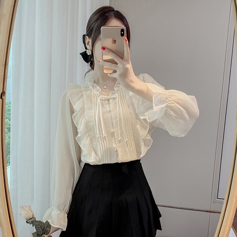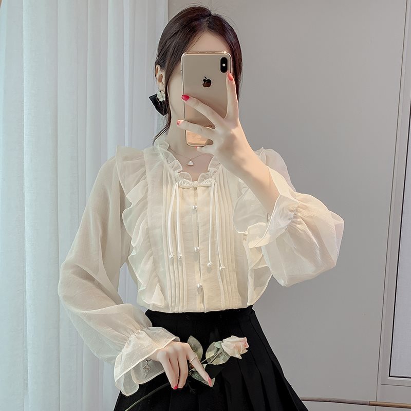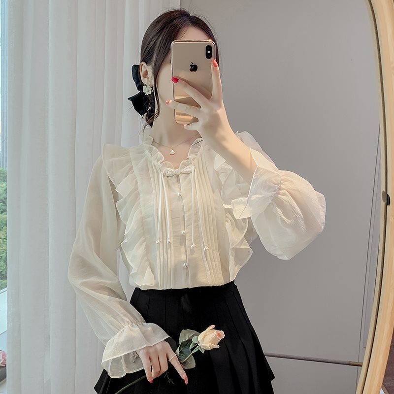 | nameOriginal | French Style Elegant Chiffon Shirt Women's Early Spring New 2024 Western Style Noble Shirt Design Button Lace Top |