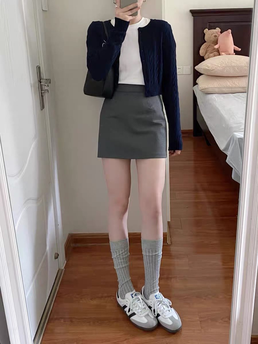 | nameOriginal | French Style Elegant Grey High Waist Skirt Women's Spring and Summer Slim A- line Skirt Hip Covering Suit Short Skirt |