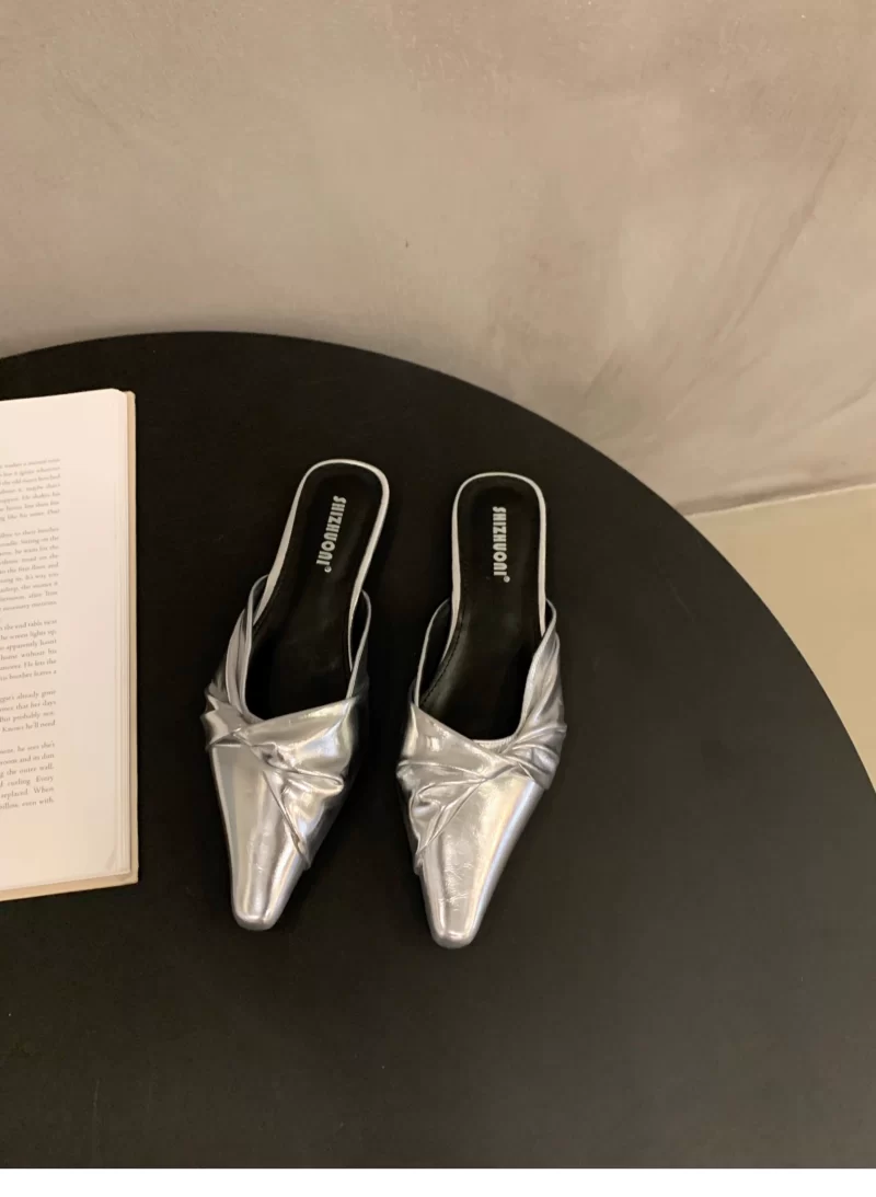 | nameOriginal | French style silver toe flat pleated half slippers |