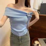 | nameOriginal | French Style Three-Dimensional Flower Design Sense Tight Waist Ice Silk Short Knitted Women's Drawstring Pleated Shoulder Short-Sleeved Top |