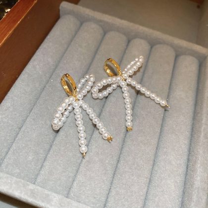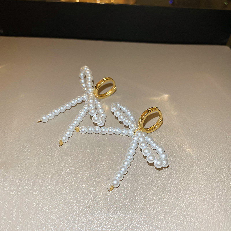 French Sweet Pearl Bow Ear Buckle High-end Elegant All-match Earrings Niche Design New Earrings for Women
