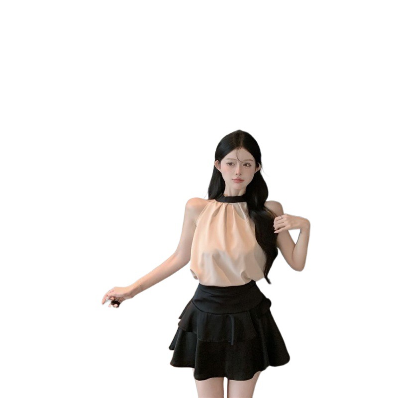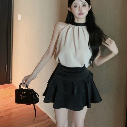 | nameOriginal | French Two-piece Sleeveless Neck Top Women's Summer Black A- line Skirt Skirt Short Skirt Elegant Socialite suit |