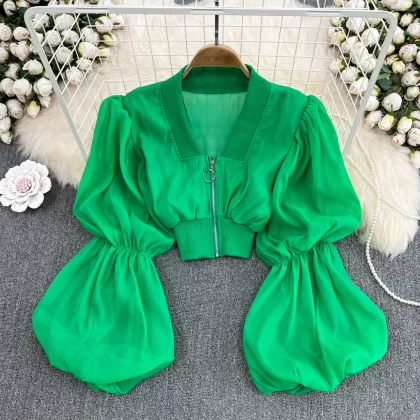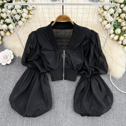 | nameOriginal | French V-neck zipper navel chic top shirt |