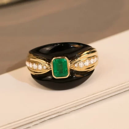 French Vintage Emerald Stud Earrings and Peridot Ring
