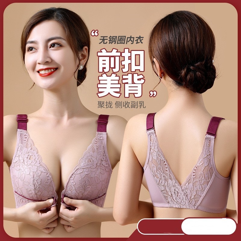Front buckle underwear women's small chest push-up breast top support wireless lace beauty back European and American Southeast Asian bra