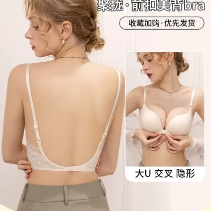 | nameOriginal | Front button beautiful back bra for women with small breasts gathered to show large backless u-shaped summer thin 2024 new popular bra |